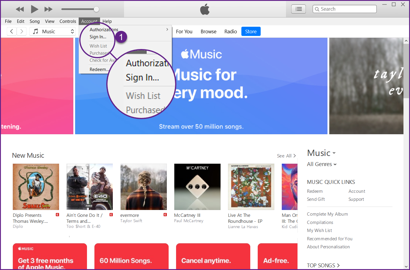 من شريط القائمة العلوي، اختر Account و قم بتسجيل الدخول